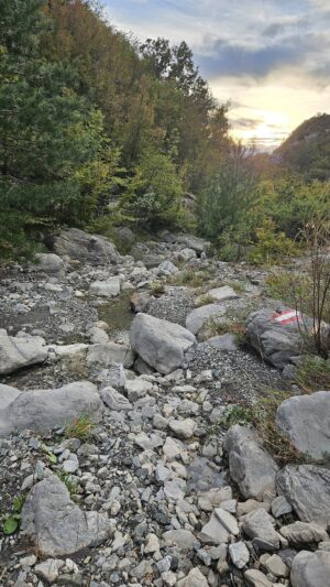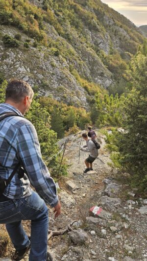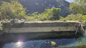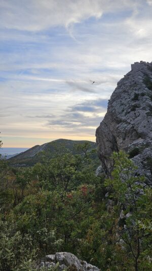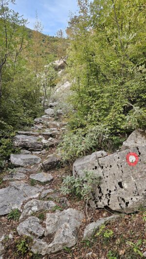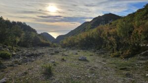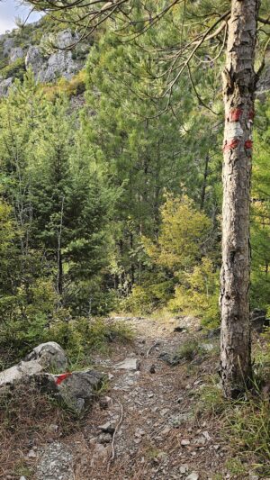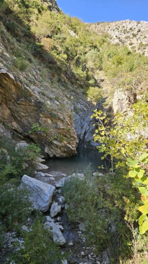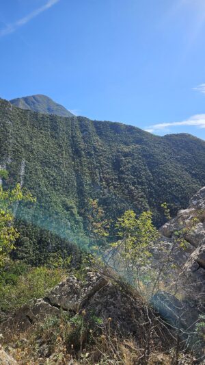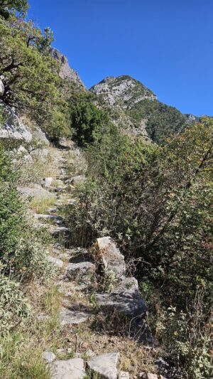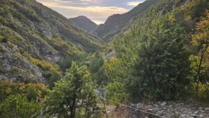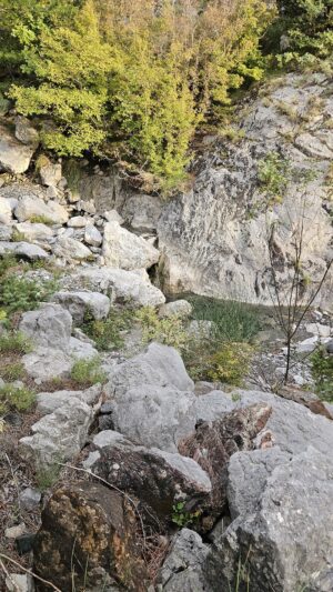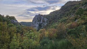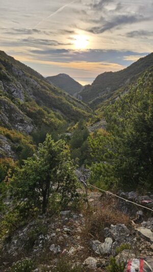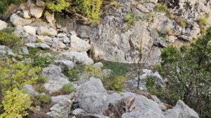 Next, to the rock massif and the Menke Old Bridge. This is a small, old stone crossing near the climbing area and the waterfall; In local guidebooks, it is the first kilometer of many trails and races starting at the walls of Stari Bar that leads to it. The local press directly mentions “Menke Bridge and the waterfall next to it” as a landmark in the mountain belt above the city; a section of the Rumija SkyRunning trail is also dedicated to it, where the road “on cobblestones through the heart of Stari Bar” leads to Menke Bridge near the climbing area.