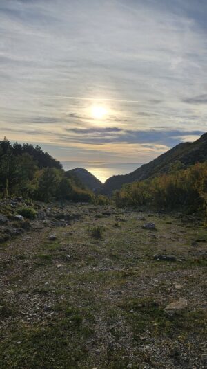 Beyond the waterfall, the trail climbs unnamed terraces and emerges at Trolj/Trolj, a local toponym on the southern spurs of Rumija above Bar. This is not a “standalone classic peak,” but a ridge and plateau with views of the Adriatic; its coordinates are provided as geotags by local mapping services. It’s a great place to catch your breath, look back at the fortress walls, and listen to the sea breeze.