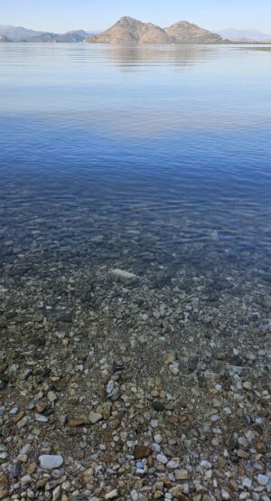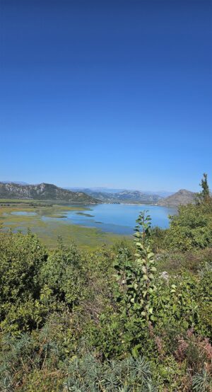 Hydrobotany and Landscapes. Skadar is a shallow (average depth ~5–6 m), seasonally “breathing” lake with floods: in summer, its area is approximately 370 km², and in winter, up to ~540 km². The shores are interspersed with reed and rush belts, willow thickets, and estuarine marshes; karst springs (oka) are characteristic.