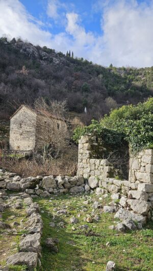 This is precisely why Poseljani makes such a powerful impression on the landscape. Here, one feels especially clearly that the architecture was born out of economic necessity. In regional and tourist descriptions, the village is consistently associated with stone buildings, dry masonry, old houses, and mills; In public Russian-language Telegram posts, Poseljani is also presented as a place where one can experience “real, non-touristy Montenegro” and traces of its milling past. The authenticity of Poseljani lies not in the fact that “nothing has changed” here, but in the fact that the old settlement logic—the stream, the elevation changes, the outbuildings, the stone, and the path—can still be discerned here.