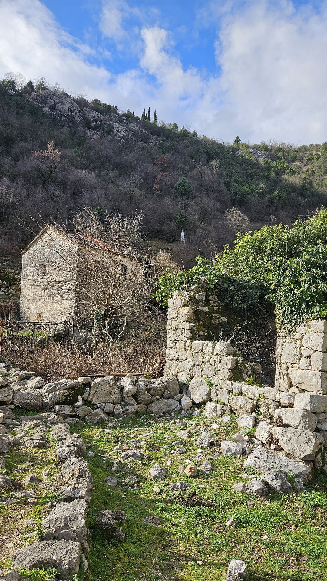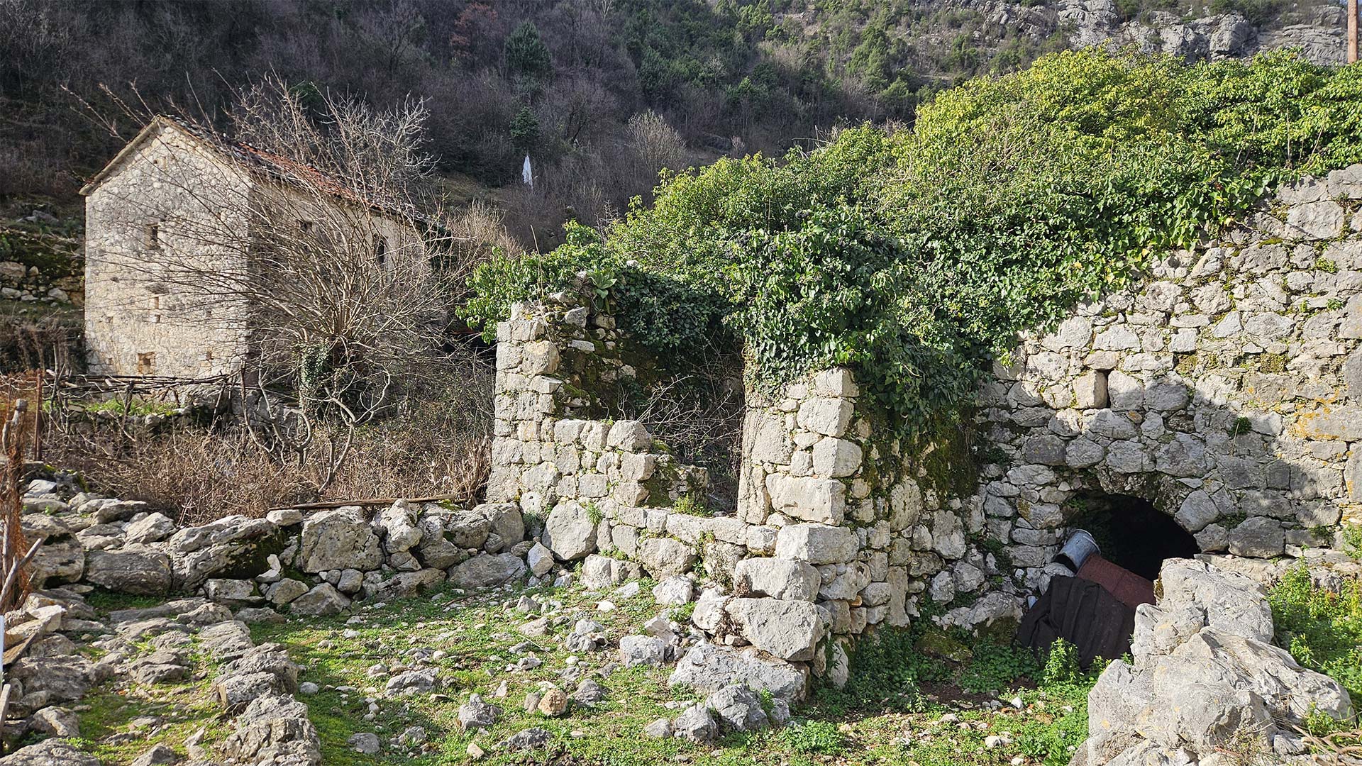 This is precisely why Poseljani makes such a powerful impression on the landscape. Here, one feels especially clearly that the architecture was born out of economic necessity. In regional and tourist descriptions, the village is consistently associated with stone buildings, dry masonry, old houses, and mills; In public Russian-language Telegram posts, Poseljani is also presented as a place where one can experience “real, non-touristy Montenegro” and traces of its milling past. The authenticity of Poseljani lies not in the fact that “nothing has changed” here, but in the fact that the old settlement logic—the stream, the elevation changes, the outbuildings, the stone, and the path—can still be discerned here.
