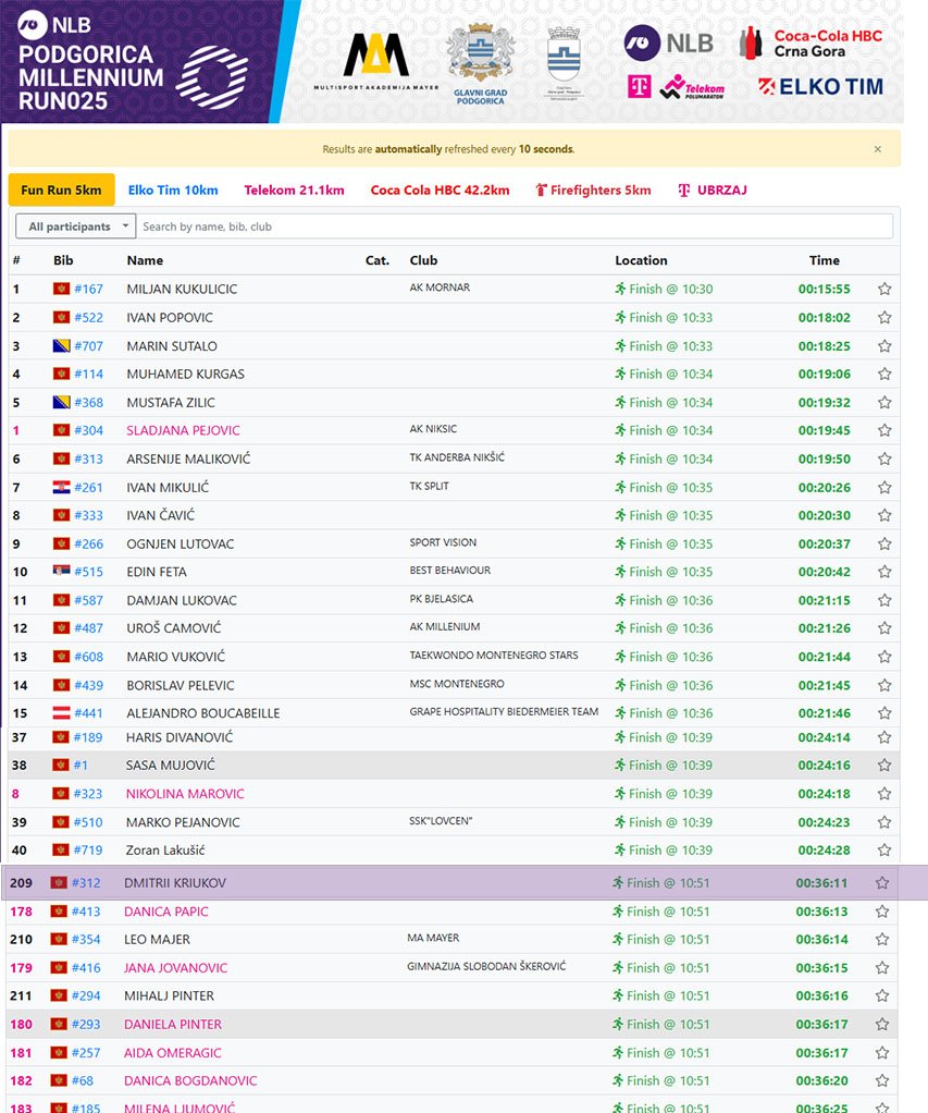 These results once again confirm that the Podgorica Millennium Run course is fast and flat – ideal for chasing personal bests and qualifying for sporting events.