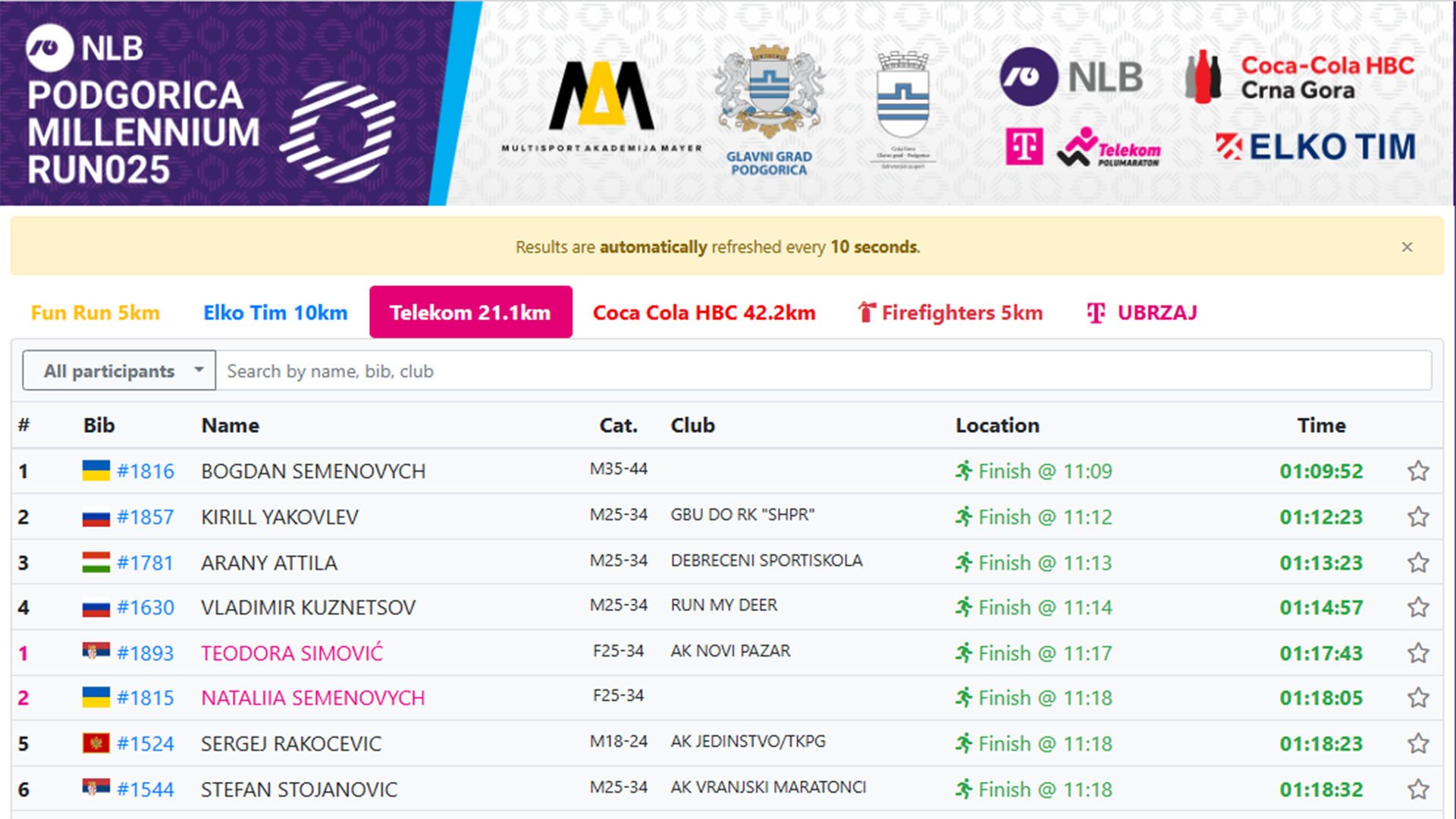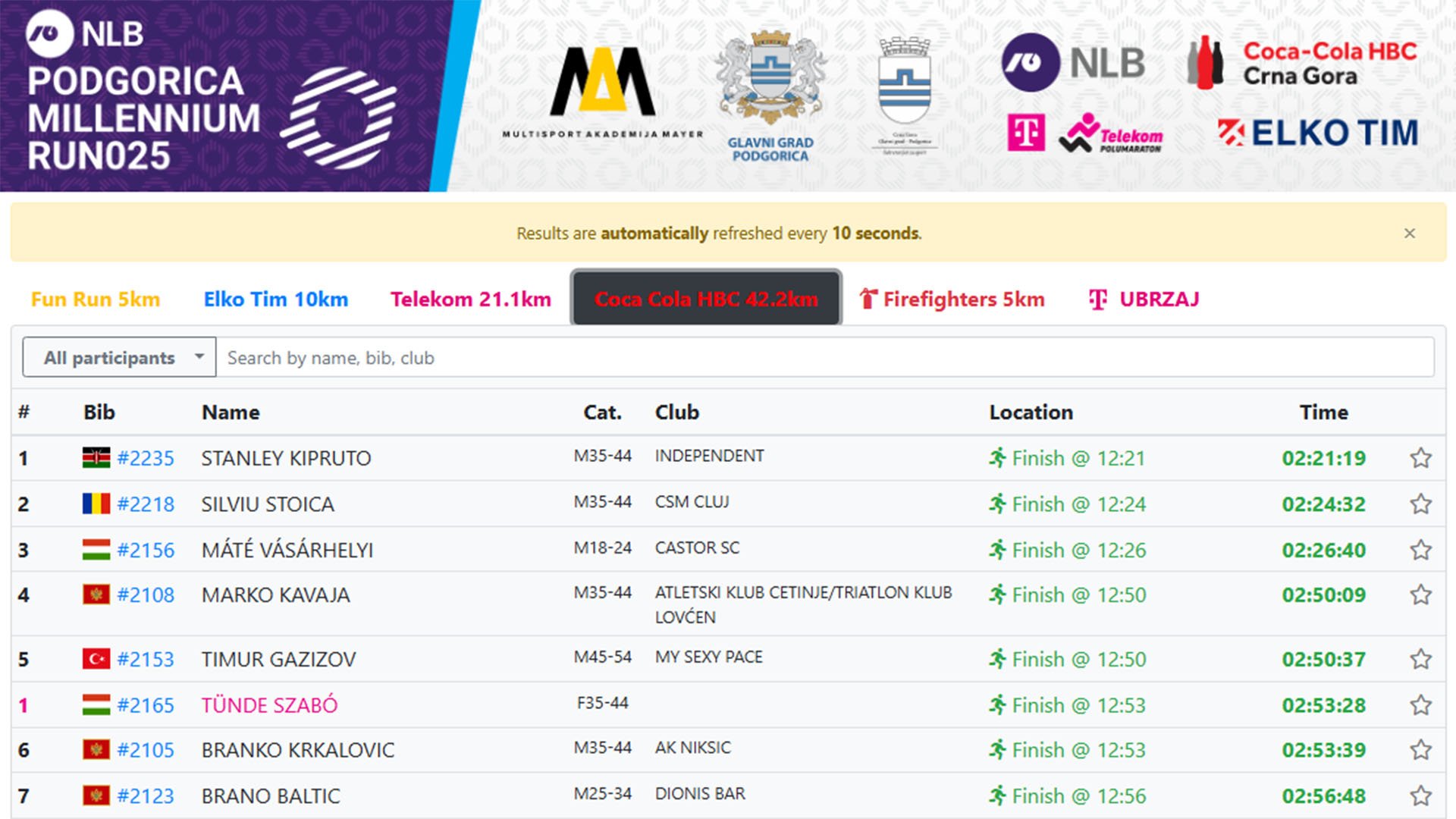 The exact finishing seconds for the 5- and 10-kilometer races are not provided in the open text reports -they are only available in the interactive results system. Therefore, in this article, we rely on the official press releases for the names of the winners.