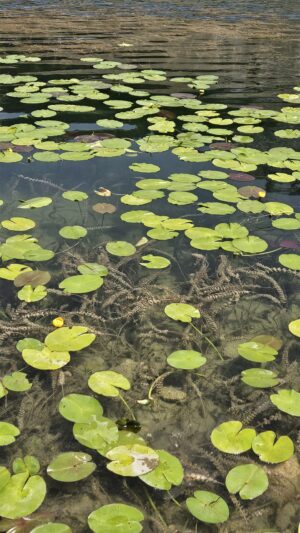 - Aquatic vegetation: The lake is rich in aquatic plants — its waters are abundant with vegetation including grasses, water lilies, and bulrushes.