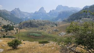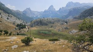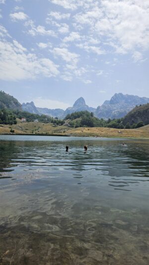 The main jewel of the trip was Bukumir Lake — a high-altitude glacial lake located at about 1,440 meters above sea level in the Kučka Krajina mountain range, not far from Podgorica. The lake is surrounded by majestic peaks and alpine meadows, and in summer it becomes a popular place for tourists, climbers, and solitude-seekers. The water is crystal clear, changing shades from emerald to sky blue depending on the time of day and weather.