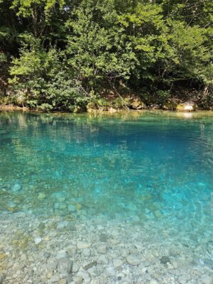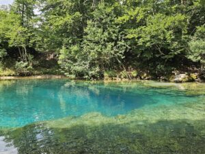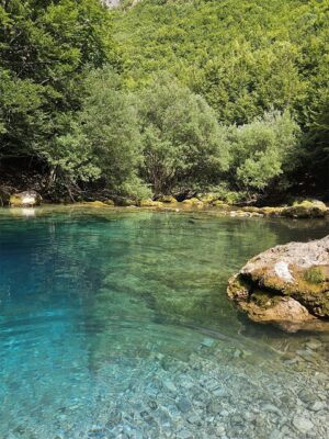Oko Skakavice, or “The Blue Eye,” is a karst spring located at an altitude of about 1,000 meters, forming a crystal-clear lake around 25 m wide and up to 70 m deep. Water emerges from a deep underground point, creating a tranquil, eye-shaped lagoon surrounded by forest. The water is extremely cold — around 5°C — making swimming inadvisable, though it is safe to drink. Often referred to as a “Wonder of Prokletije”, it is renowned for its striking beauty.
