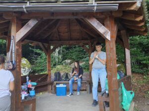 As the group climbed, they emerged from forested paths onto alpine meadows, blooming with fireweed, St. John’s wort, и ripe wild strawberries — creating a vibrant and soulful atmosphere for the hike.