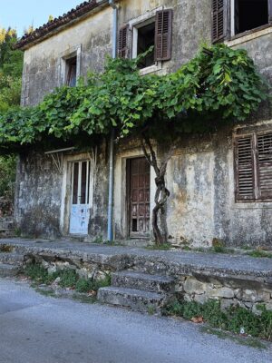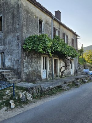 Limljani is famous for its vineyards and olive groves. Even at night, in the cool of August, the air here is thick with the smell of wine berries. Old stone houses with tiled roofs and wooden shutters sleep quietly, and the occasional bark of a dog reminds us that life goes on after sunset.