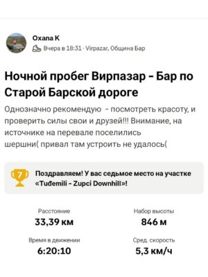 The Virpazar – Bar route along the Old Road is not just 33 kilometers of walking. This is a journey where the silence of lake shores, the aromas of vineyards, the history of old mansions and the coolness of mountain passes are combined in one night. The Starlight group covered the distance in 6 hours 20 minutes of pure movement, but with stops, photo pauses and night conversations the total time was about 11 hours. This was not just a hike, but a memory that will warm you for many years.
