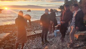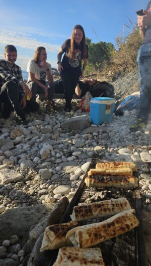 And of course, a good rest after a hike is a must. The next day, we had our traditional picnic on the beach near Bar. The weather was warm like spring, and the warm atmosphere, music, and jokes made the weekend even more enjoyable! And the almost-nightly game of Codenames only added to the fun!