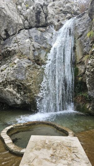 When the spring is full, the water gushes forth in an impressive 10-meter waterfall. There’s a baptismal pool here, and reliefs of Prince Jovan Vladimir and his wife, Teodora Kosara, are carved into the rock, along with a scene of their baptism in the Jordan River. A little further on, the famous cross of Prince Vladimir is carved, which I’ll tell you more about another time.
