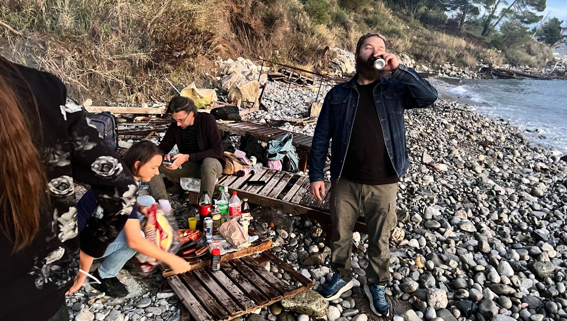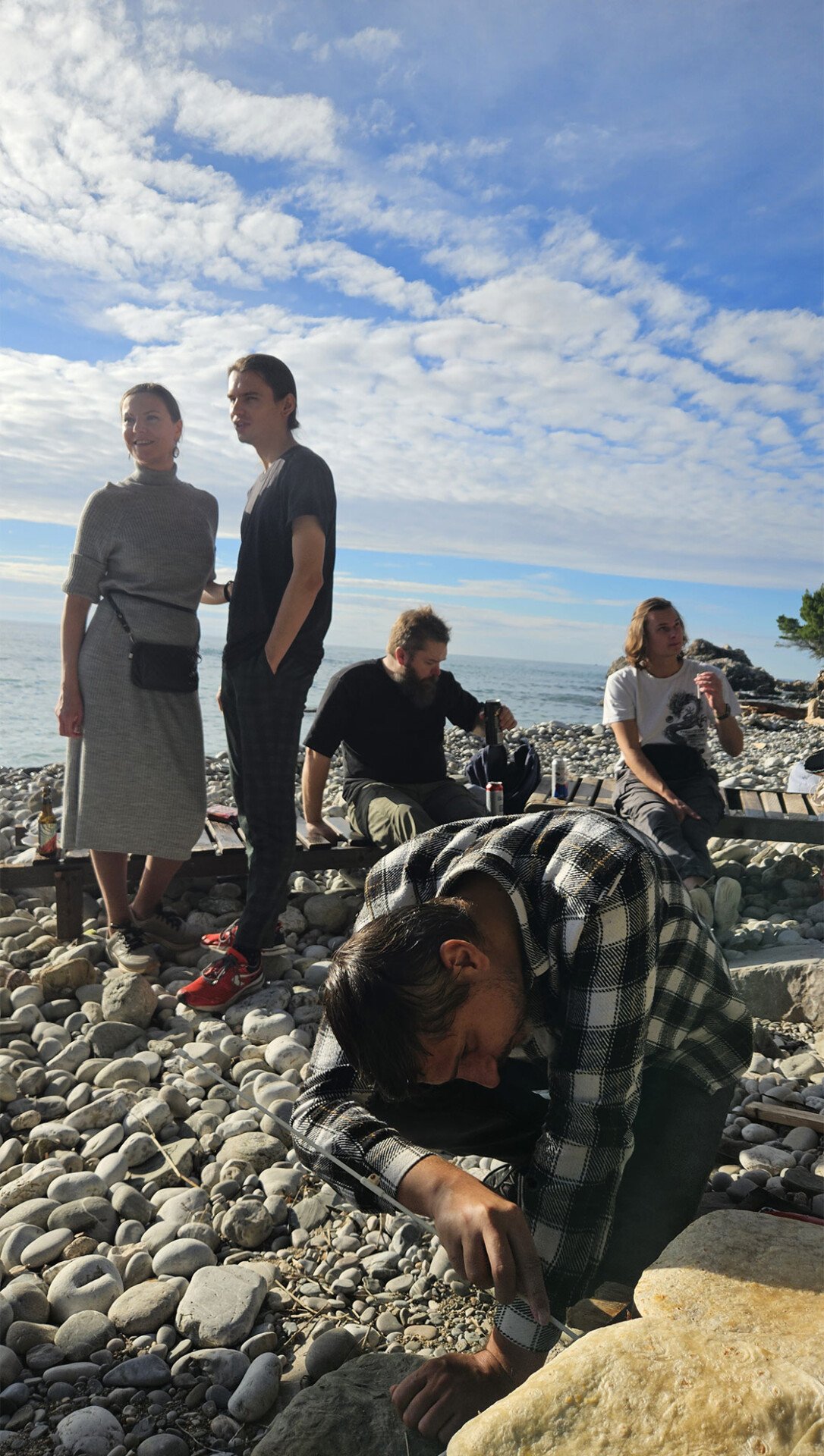 And of course, a good rest after a hike is a must. The next day, we had our traditional picnic on the beach near Bar. The weather was warm like spring, and the warm atmosphere, music, and jokes made the weekend even more enjoyable! And the almost-nightly game of Codenames only added to the fun!