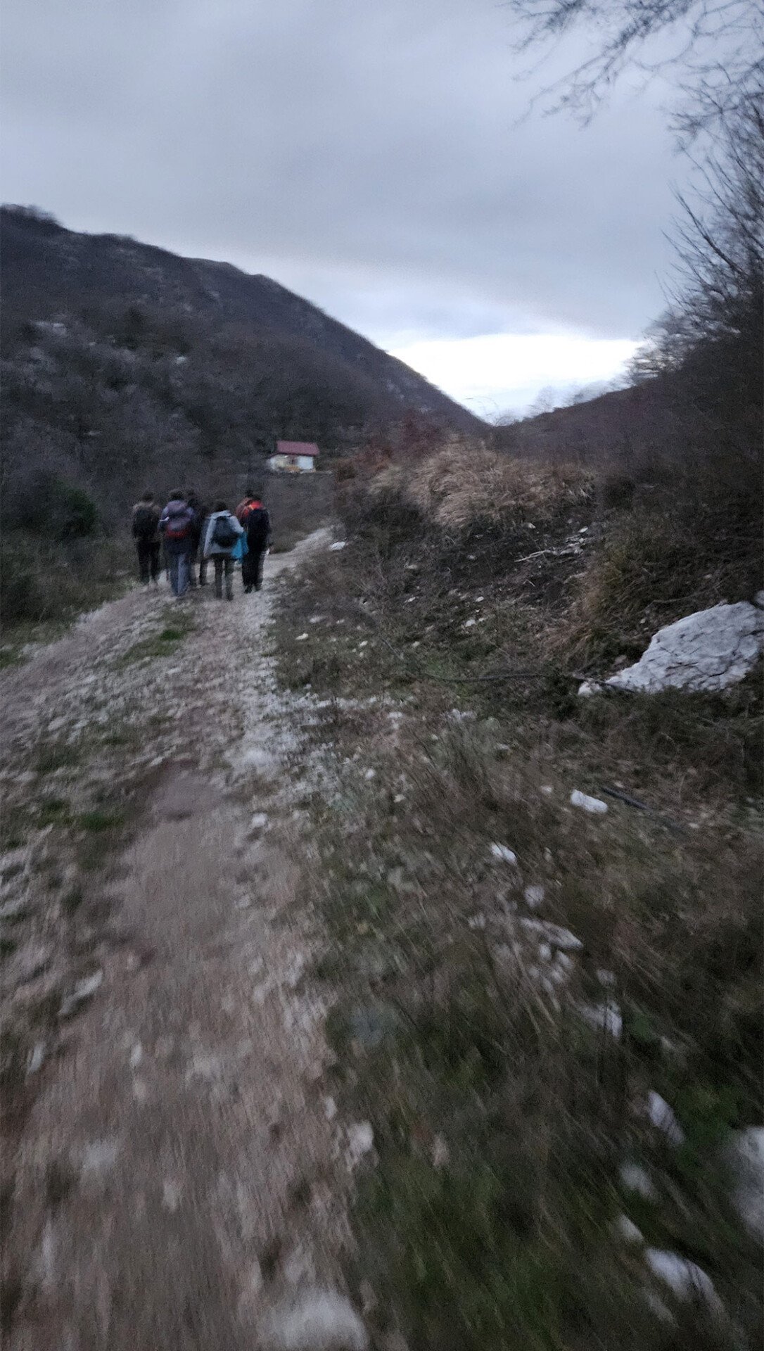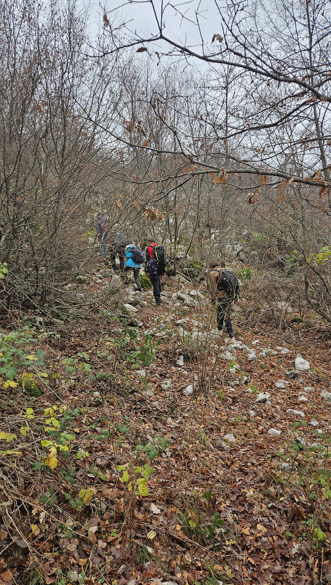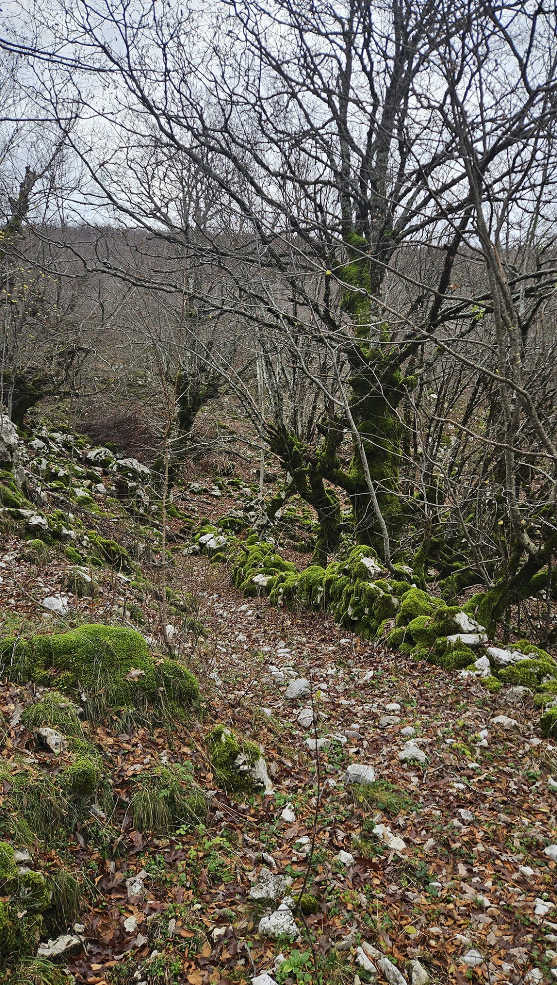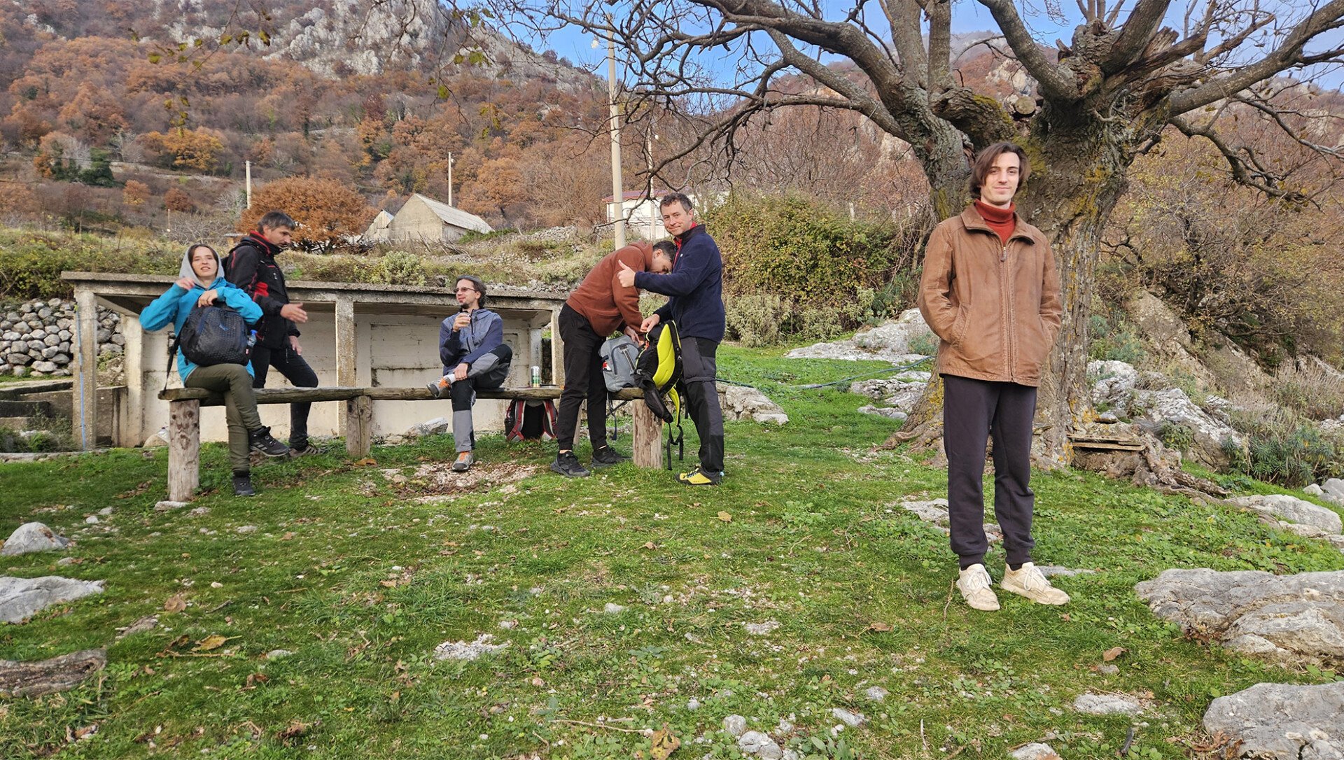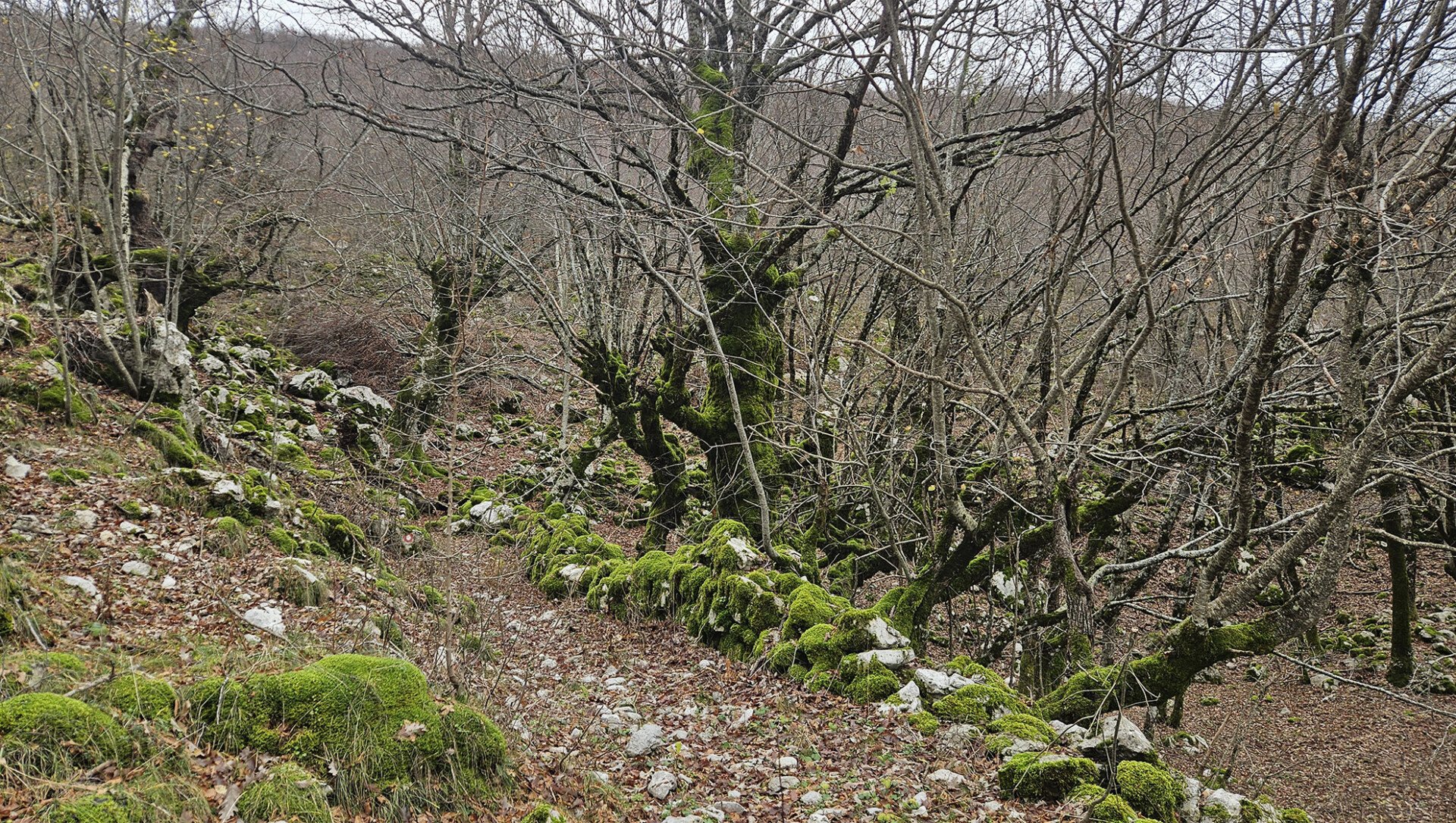 From Lunje, we follow a dirt road toward the pass. Along the way, we encounter isolated houses that look like seasonal summer homes. The pass, or saddle, is located at an altitude of 1,400 meters above sea level. The climb from Lunje is significant. We then descend, also along a dirt road through a beautiful beech forest, to Veliki Mikulići.