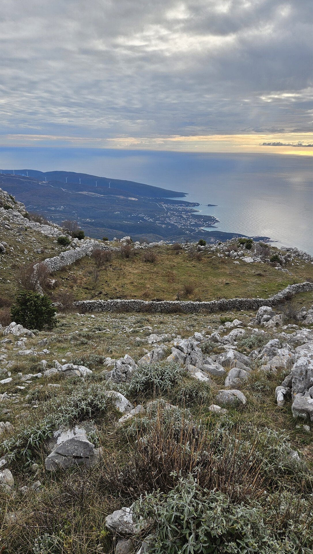 Next, we begin the descent to the village of Lunje, where there’s a source of drinking water and an excellent vantage point for a rest stop.